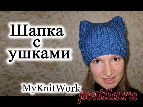 Вязание спицами. Шапка с ушками. Шапка с кошачьими ушками.