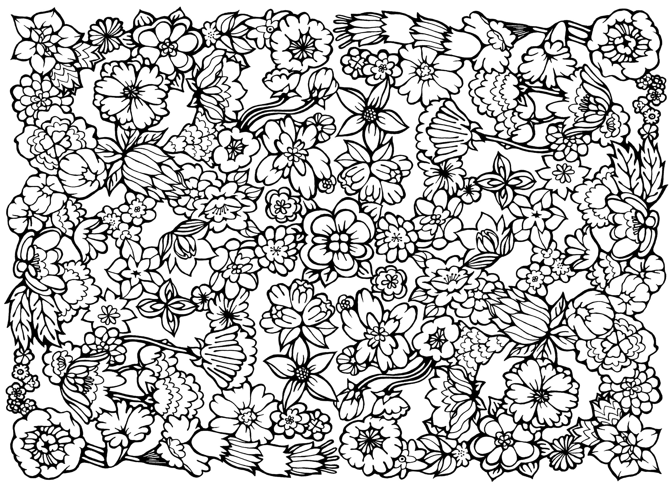 Узор из цветов Медитативная раскраска
