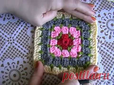 Вязание крючком. Бабушкин квадрат с декоративными стежками.