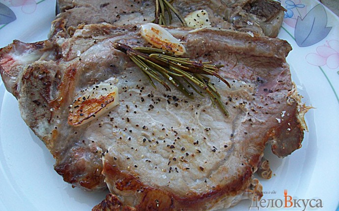 Свиные стейки с розмарином и чесноком жареные без масла
