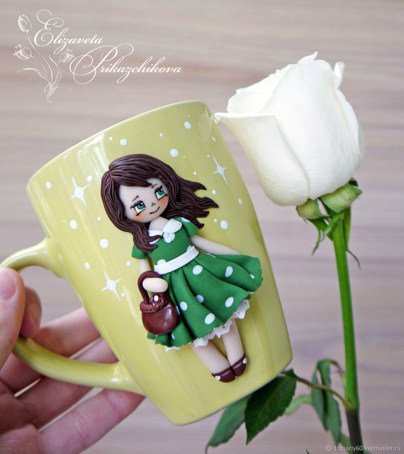 Купить Кружка с декором из полимерной глины "Девочка в платье" в интернет магазине на Ярмарке Мастеров Купить или заказать Кружка с декором из полимерной глины "Девочка в платье" в интернет магазине на Ярмарке Мастеров. С доставкой по России и СНГ. Срок изготовления: 2 дня. Материалы: кружка, кружка керамическая,…. Размер: Емкость кружки 300мл