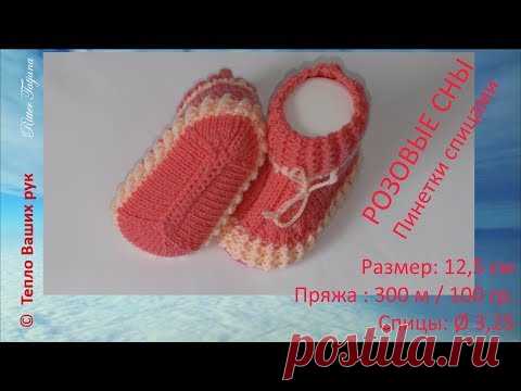 #176. Розовые сны. Пинетки спицами. - YouTube