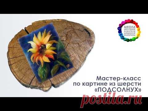 Картина из шерсти "Подсолнух" Мастер-класс 🌼 Школа Шерстяной Акварели Шешиной Екатерины