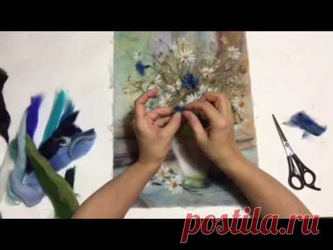 Картины из шерсти. Уроки для начинающих. Васильки.