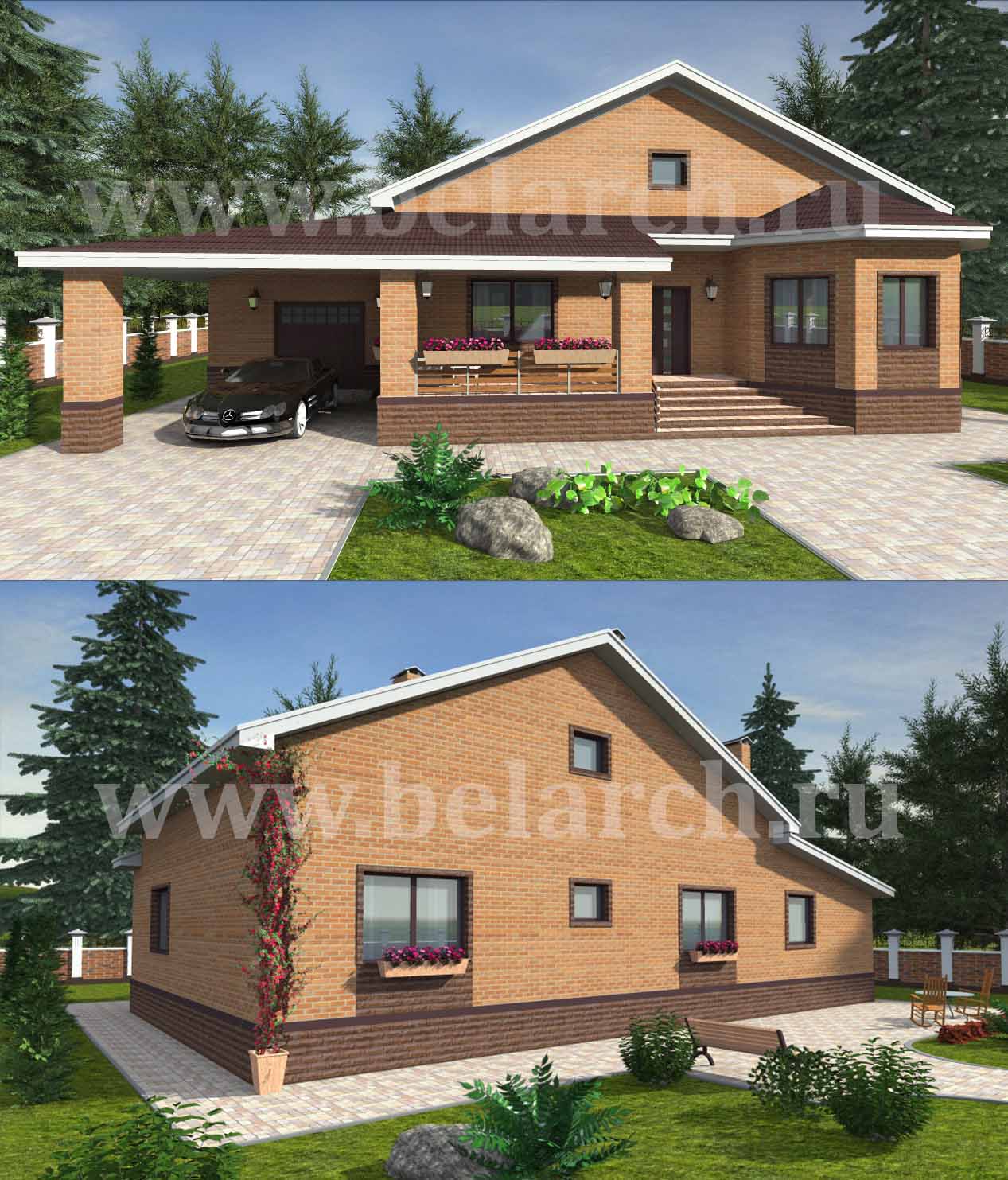 Проект одноэтажного дома с гаражом и террасой до 150 кв.м. | Архитектурное бюро. Авторские проекты планы домов и коттеджей в Воронеже, Белгороде, Курске, Туле, Москве