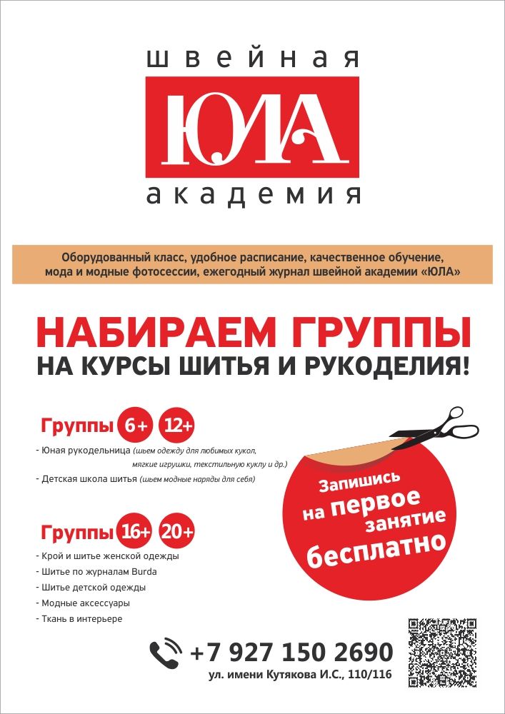 Швейная академия ЮЛА приглашает на курсы шитья в г.Саратов