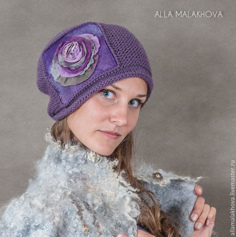 Купить Вязаная шапка с валяным декором Мир Вокруг в интернет магазине на Ярмарке Мастеров