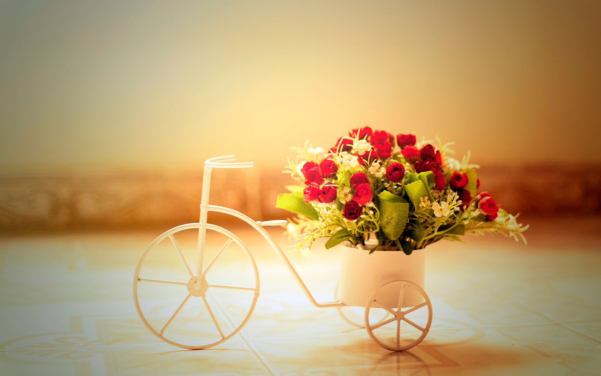Обои цветы, розы, велосипед, горшок картинки на рабочий стол