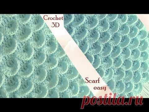Bufanda a Crochet en punto 3D plumas pavo real o media luna tejido tallermanualperu