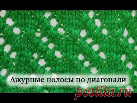 Вяжем спицами. Ажурные полосы по диагонали. Уроки для начинающих.