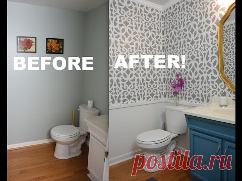 My Colorful Small Gray Bathroom Makeover With Stencils! - ThriftDiving.com - YouTube