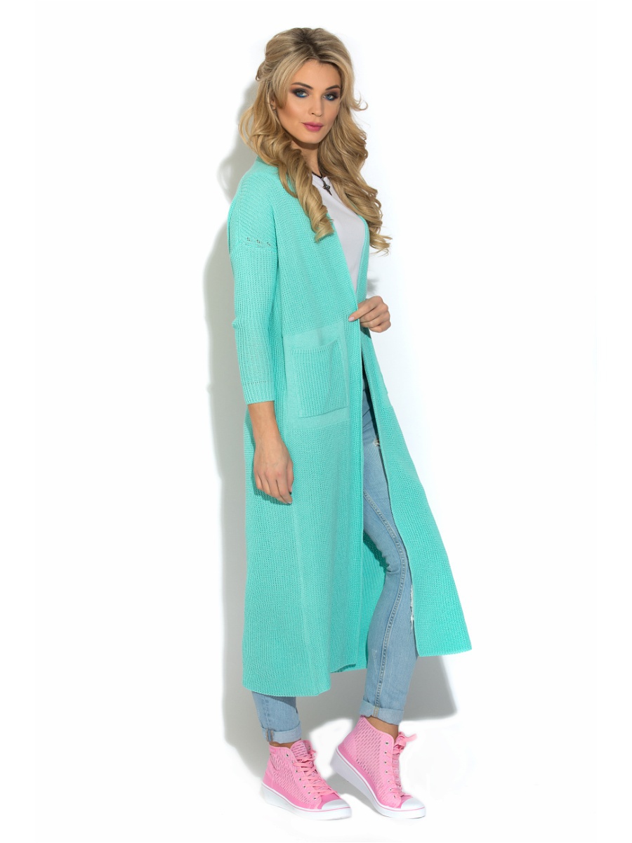 Кардиган, CLEVER woman studio Летнее вязанное пальто-кардиган из 100% хлопка, с большими накладными карманами. Спущенная пройма и перемещенный плечевой шов создают стильный силуэт "кокон". Это MAXI-пальто прекрасно дополнит любой ваш образ, и станет любимой вещью в этом сезоне.