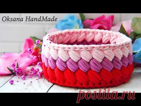 Корзина крючком из трикотажной пряжи. Basket crochet