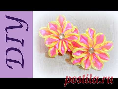 Цветок канзаши с тонкой лентой/Kanzashi flower with thin ribbon