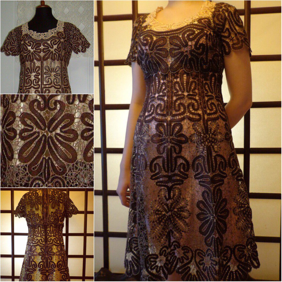 Платье кружевное "Шоколад" сплетено на коклюшках.Нитка хлопок коричневого и бежевого цвета .