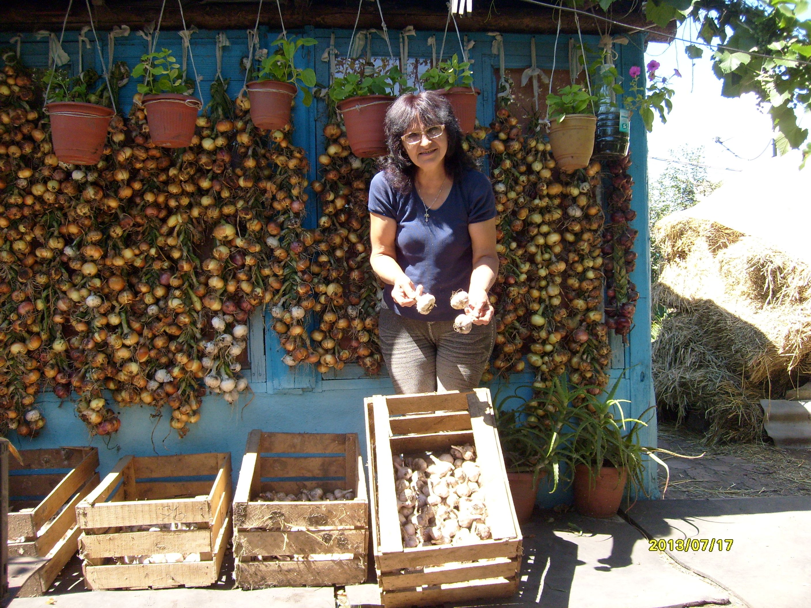 лук для сушки заплетаю в косички , чеснок сушится в ящиках