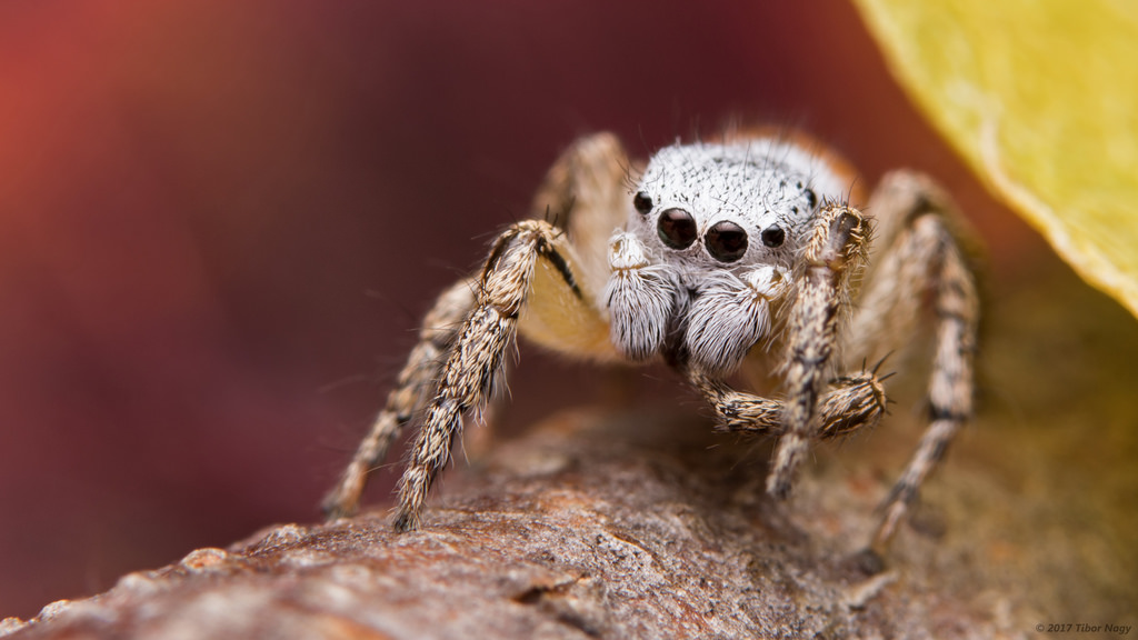 Habronattus decorus jumping spider Male Habronattus decorus jumping spider. Single exposure, hand held, diffused flash. Notes: During courtship the male raises his abdomen and moves back and forth as well as turning around, displaying its iridescent rose color to the female. Male TBL 4-5 mm.
