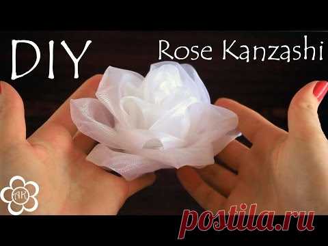 Белая роза из органзы / Kanzashi Rose Tutorial
