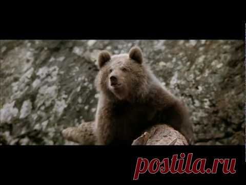 Медвежонок спасается от пумы