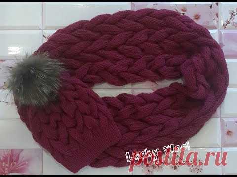 Модный, теплый снуд спицами в два оборота с узором из кос! Snood.