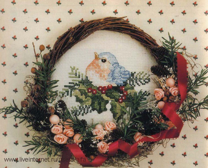 Птичка нвогодняя в гнезде Вышивка крестом, схемы