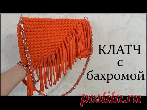Клатч с бахромой из трикотажной пряжи. Вязание крючком. Clutch bag with fringe