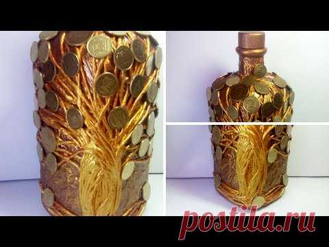 Декор бутылок денежное дерево своими руками. Декупаж декорирование украшение бутылки. Мастер класс