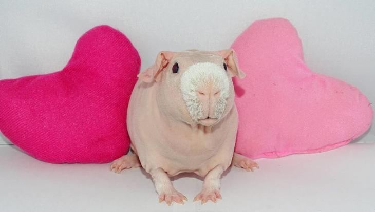 Бесшерстная морская свинка породы скинни по кличке Пим