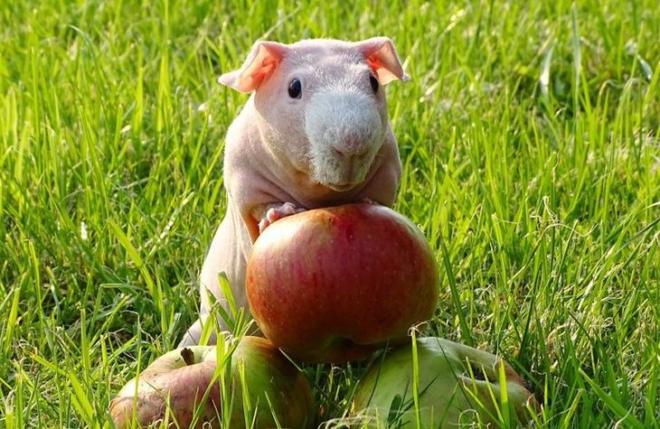 Бесшерстная морская свинка породы скинни по кличке Пим
