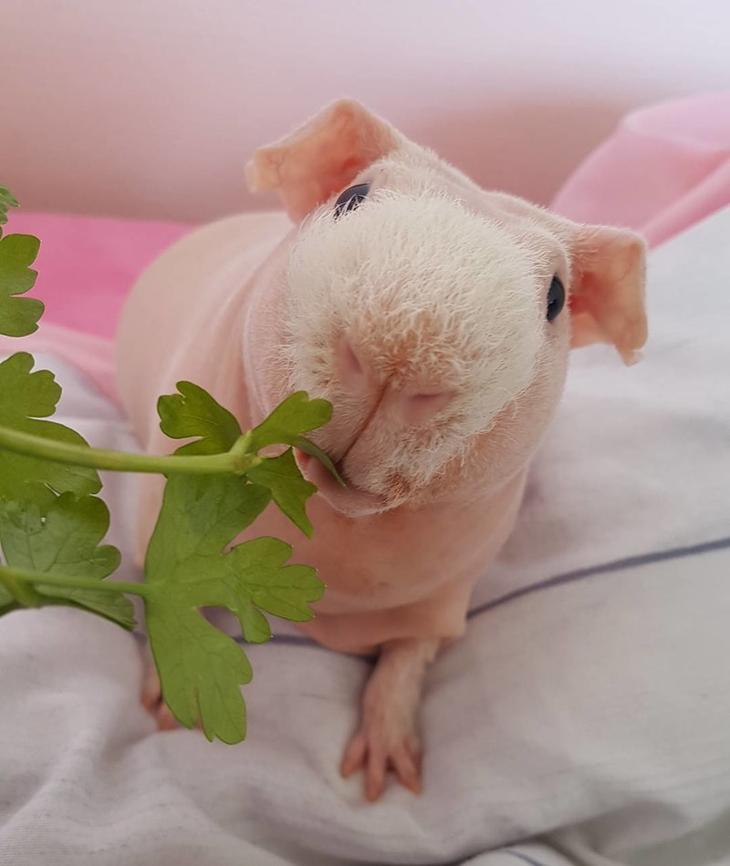Бесшерстная морская свинка породы скинни по кличке Пим