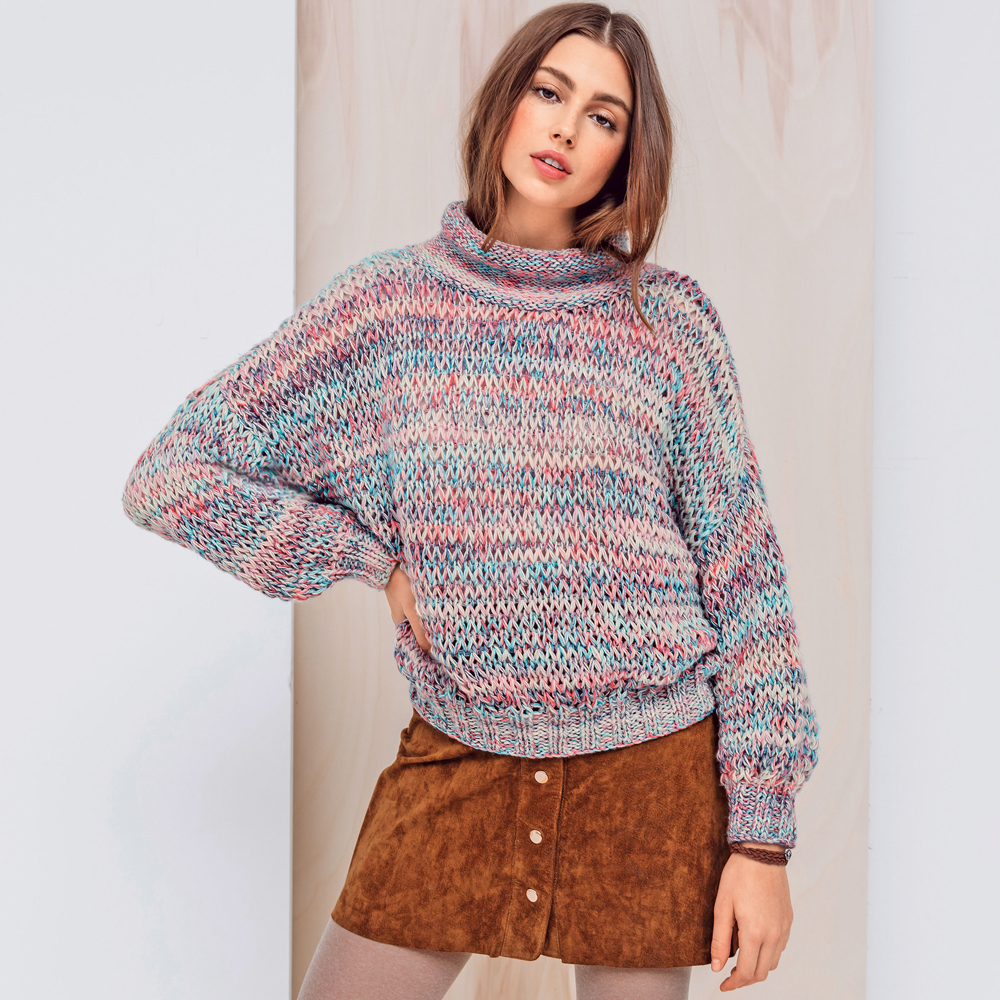 Пестрый свитер - схема вязания спицами.