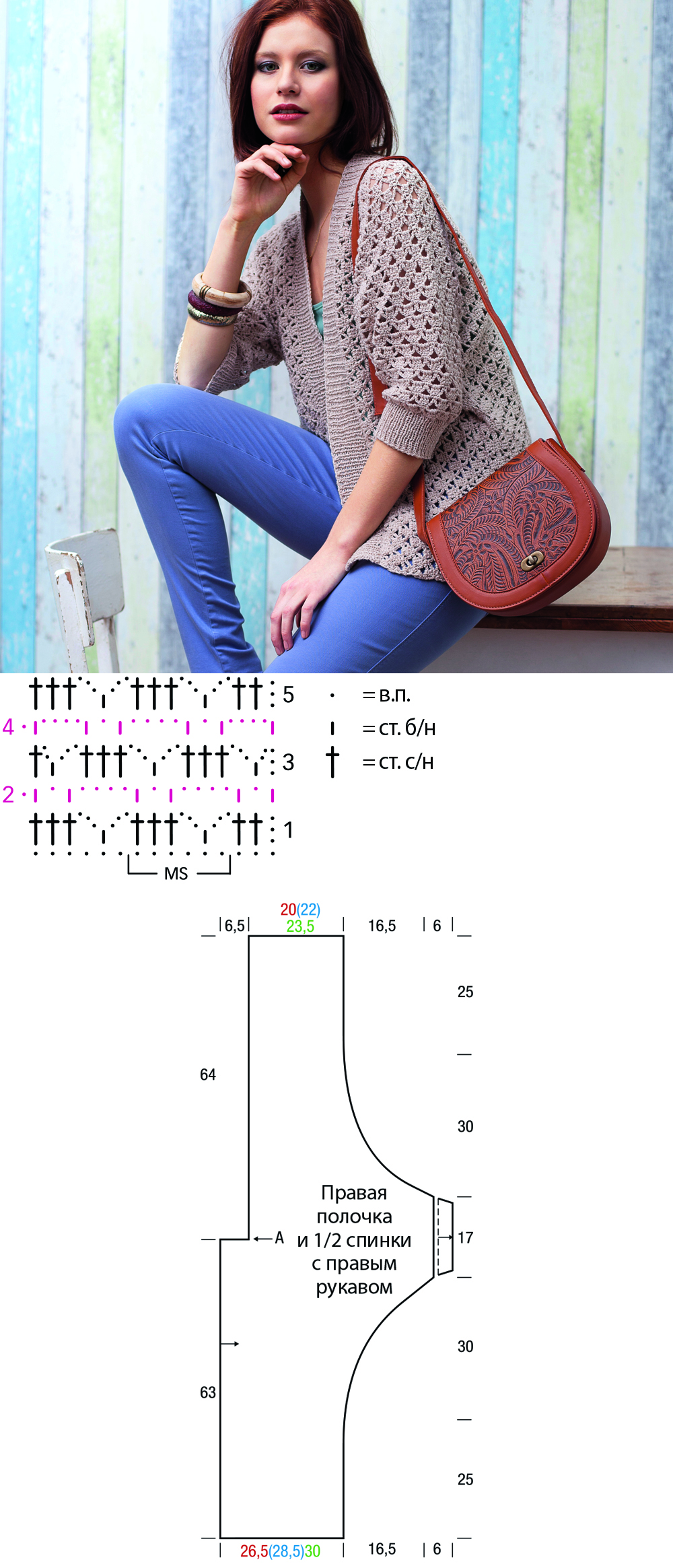 Кардиган с рукавами «летучая мышь» - схема вязания крючком. Вяжем Кардиганы на Verena.ru