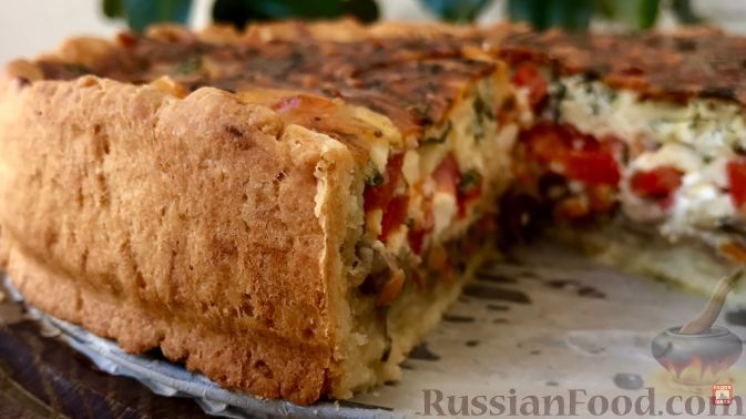Рецепт: Песочный пирог с грибами и овощами на RussianFood.com