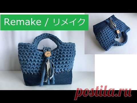 DIY トートバッグ 作り方 リメイクジーンズ ティーシャツヤーン Remake tote jeans / t-shirt yarn