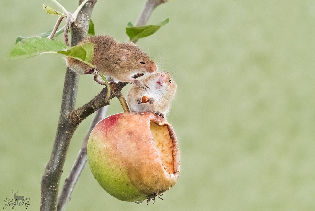 Dwergmuis / Harvest mouse / Rat des moissons 'Hey this is my apple!' I can think of endless titles for these harvest mice they are so adorable and tiny if you compare them to the size of the apple. They only weigh 4 to 6 grams! #2 Explore 26 October 2017