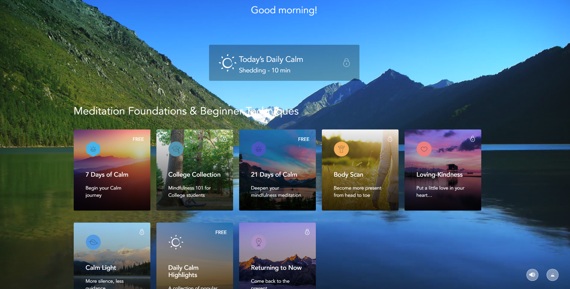 Сделать перерыв в офисе или расслабиться после тяжелого дня поможет такой сервис как Calm. На сайте есть несколько вариантов для снятия стресса. Они представляют собой фоновое видео с соответствующими ему звуками. Например, можно слушать шум прибоя во время заката, плавать в океане, летать выше облаков, слушать шуршание листьев или наблюдать за полярным сиянием. Если вам удобнее наслаждаться звуками природы со смартфона, то приложение Calm доступно для IOS и Android.