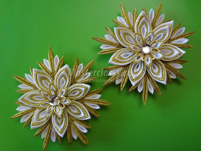 Повязка и волшебная палочка со снежинкой канзаши. Мастер-класс
