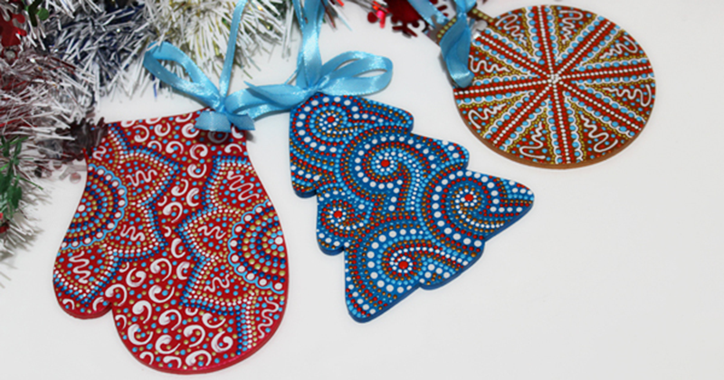 Мастер-класс по точечной росписи новогодних подвесок Что может быть приятнее и ценнее того подарка, который сделан своими руками? Ведь в него вложена душа, добрые мысли и тепло дарящего! А получить новогодний подарок, сделанный своими руками, приятнее вдвойне, так как Новый Год — праздник добрый и волшебный! Одним из таких чудесных подарков может стать набор новогодних подвесок, расписанных в технике точечной росписи.