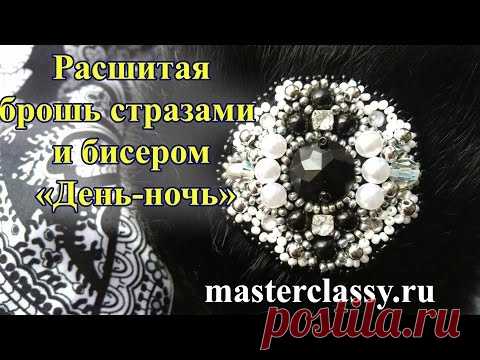 Красивая расшитая брошь стразами и бисером «День-ночь»: видео урок