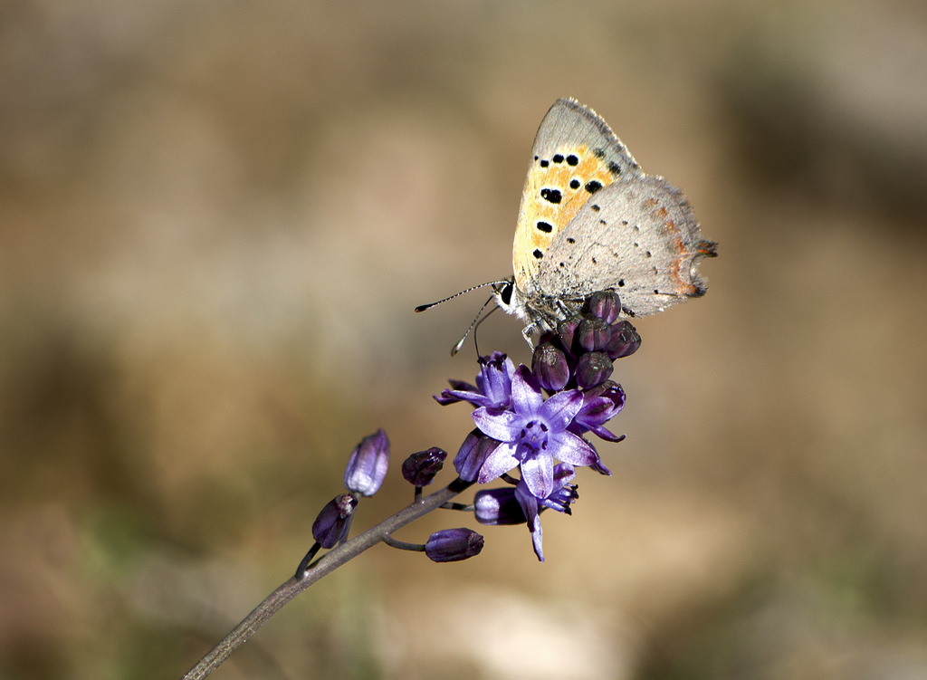 Червонец пятнистый (Многоглазка пятнистая) / Small Copper (American Copper, Common Copper) / Lycaena phlaeas / Малка огневка / Kleiner Feuerfalter On Autumn Squill (Prospero autumnale) На пролеске осенней (Prospero autumnale)
