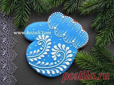 Роспись имбирного печенья, имбирных пряников глазурью (айсингом). Новогодний пряник Варежка