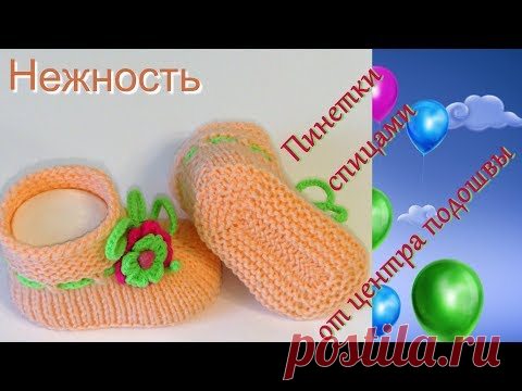 #185. Нежность. Пинетки спицами от центра подошвы.