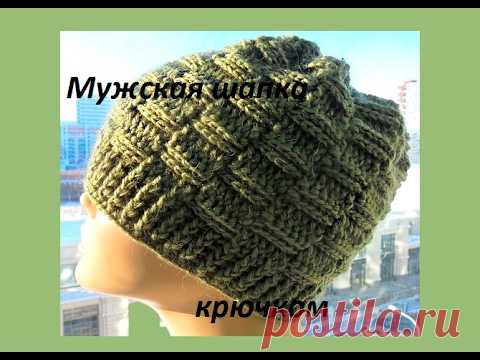Мужская шапка крючком рельефными столбиками .Men's hats crochet (Шапка #68)