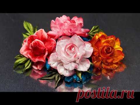 Цветок РОЗЫ (спрей-розочки). Мастер класс. КАНЗАШИ / DIY Ribbon Flower Kanzashi