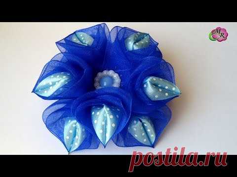 Бант из органзы. Канзаши МК/ Bow from organza. DIY Kanzashi