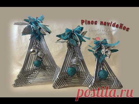 Pinos navideños, cestería con papel periódico - Christmas pins, basketry with newspaper