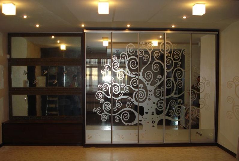 Шкаф купе с пескоструйной обработкой зеркал. Стоимость 78600 руб.