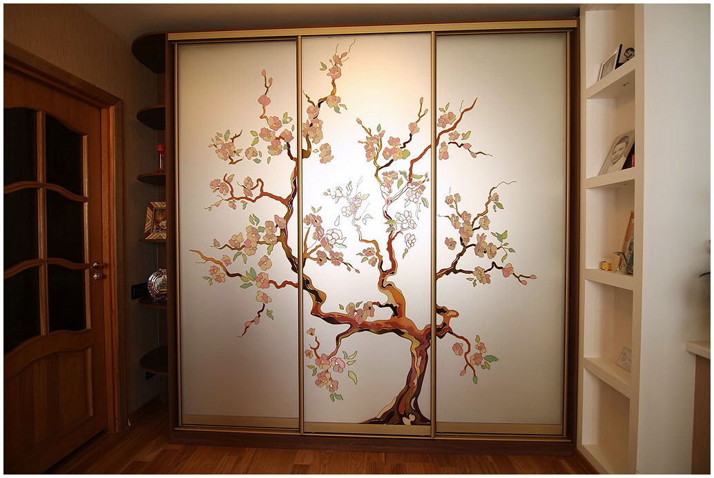 Шкаф купе с витражом на матовом зеркале. Цена 112900 руб.