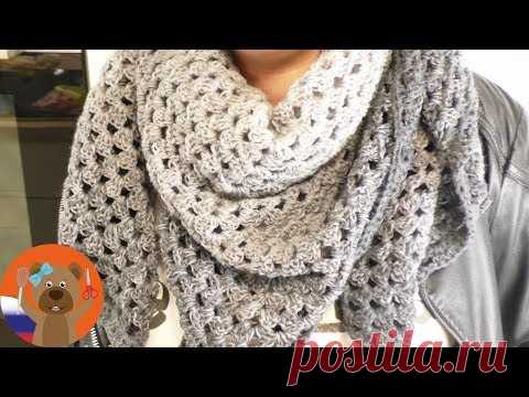Шаль ХХL треугольной формы вязание крючком своими руками