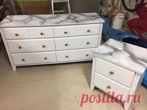 DIY Painted White Marble Dresser and Nightstand
